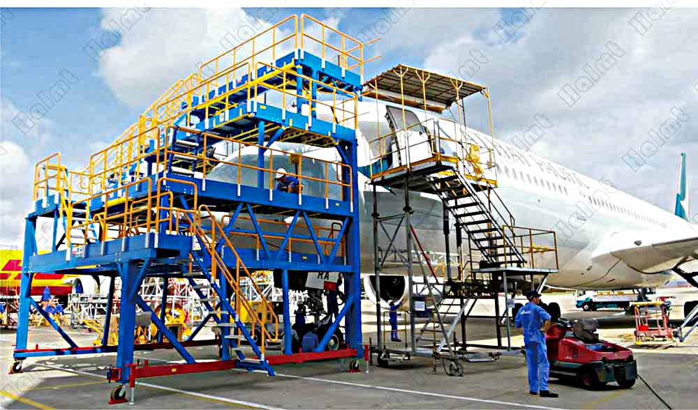 ---底部留空,飛機(jī)牽引車可以直接從平臺底部通過;