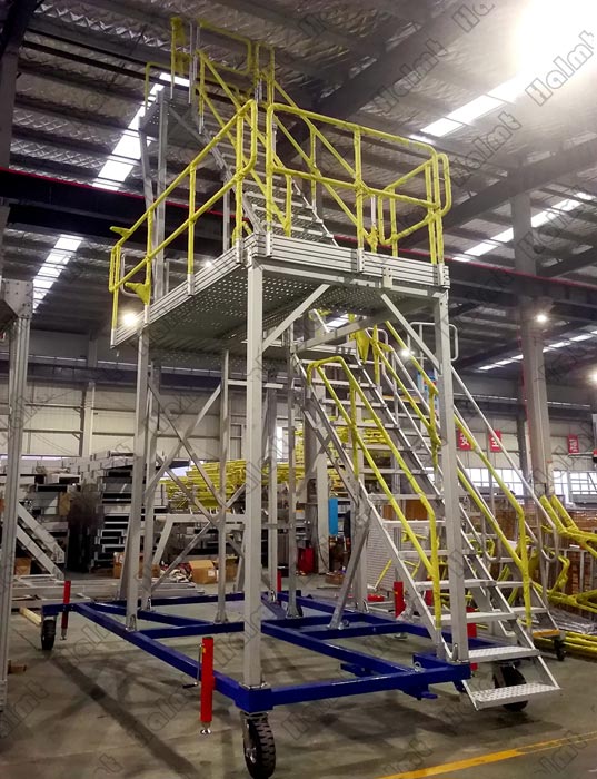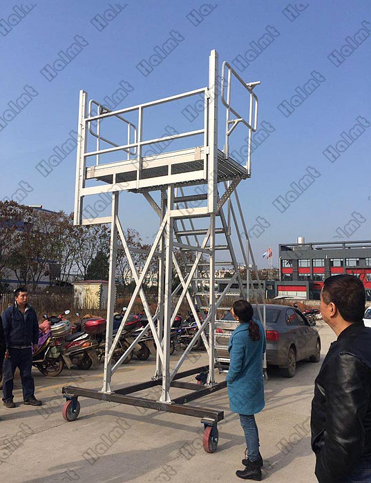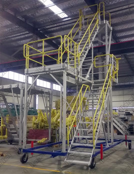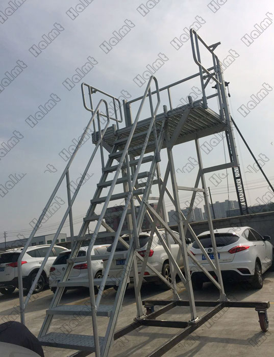 安全:產(chǎn)品設計符合EN ISO 14122和MH/T 3012.17-2010 相關(guān)標準,高強度鋁型材結(jié)構(gòu),安全門,防滑踏步,首末臺階安全警示條等;