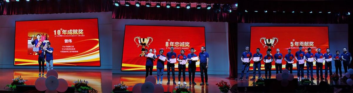伴隨著歌舞、小品、游戲各個(gè)環(huán)節(jié)的歡慶,迎來(lái)了慶典的高潮部分--頒獎(jiǎng)環(huán)節(jié)。分別對(duì)5年貢獻(xiàn),8年忠誠(chéng),10年成就的老員工進(jìn)行了頒獎(jiǎng)儀式。